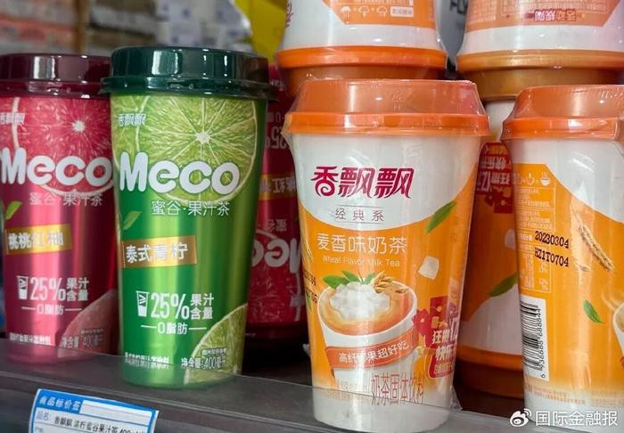 一个重要的变化正在发生,冲泡奶茶已不再是香飘飘第一大业务,其营收占比由同期的52.8%下滑至41.7%。转而成为营收支柱的是即饮板块,包括Meco果汁茶、原叶轻乳茶、兰芳园冻柠茶等产品。